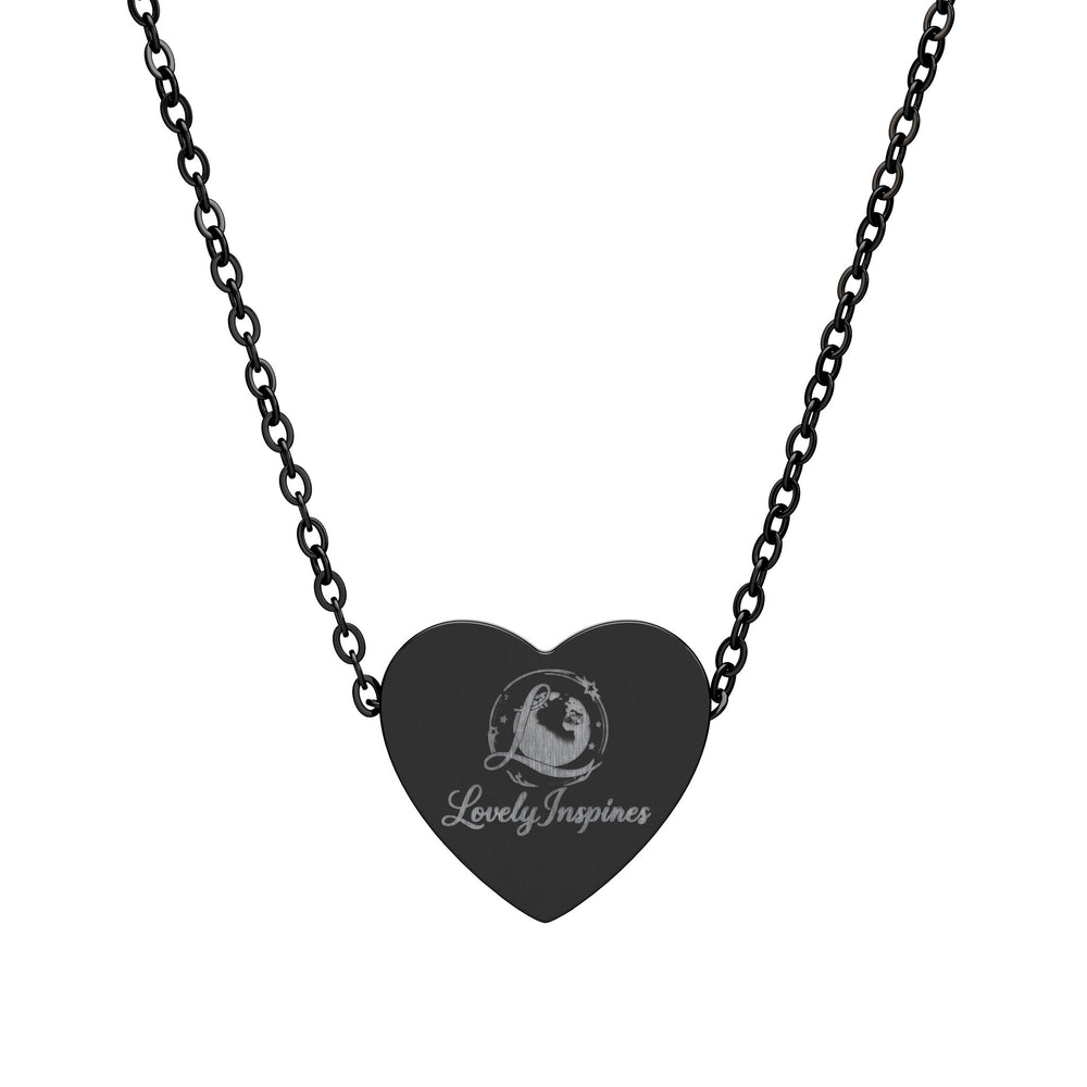 A small, engraved heart necklace crafted from surgical-grade 316L stainless steel. The heart pendant (16 x 14 mm) carries a delicate laser-engraved silhouette of a crowned profile, rendered with a crisp permanent etch that won’t fade. Available in polished silver or sleek black PVD finish, the piece sits lightly on a fine chain and wears like a quiet declaration—elegant, understated, and thoughtfully made for sensitive skin. It arrives ready to layer with everyday looks or to tuck beneath a collar for moments when you want a private reminder of love, strength, or cherished memory.