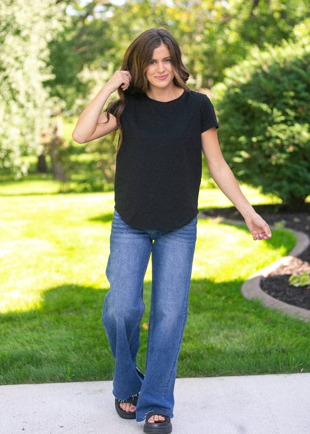 With the same fit as our Crewneck Striped Tee, the Essential Crew Basic Tee is going to be the perfect basic modest tee this season!This shirt makes a versatile choice in your wardrobe and can be styled in a variety of ways - pair with our Quinn Knit skirt, denim skirt, overall dress, a-line skirt...the opportunities are endless! It is made from a soft and breathable fabric to ensure cool comfort!